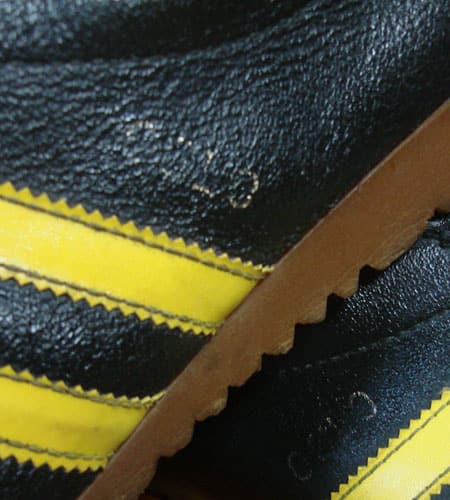 サイズ28.5㎝。うわーこれは良い!ユーゴ製、都市シリーズアディダスのオスロです。当然70年代のオリジナル!黒×黄色の配色がとても色っぽくてカジュアルはもちろんドレッシーな格好にも絶対合いますね。サイズもすごく良いサイズです。これ程の極上物は滅多お目にかかることはないです!