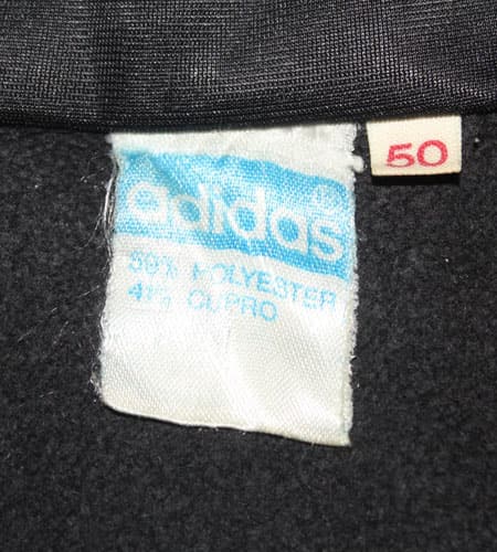 着丈65cm、身幅55cm。OPTIジップを使用 70年代初期、西ドイツ製のアディダスジャージです。アディダスジャージの中でも常に人気のある曲がりポケット。しかもこちらは希少な黒×白のカラーリング、黒の引き締まった印象を与えるボディーに白の三本線が映えています。70年代の傑作!