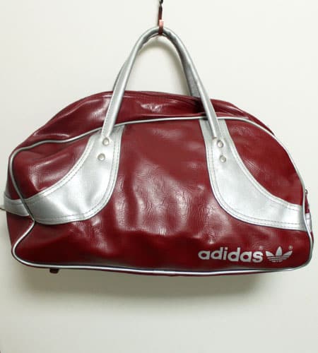 縦46cm、横(奥行き)22cm、高さ26cm。カラーはワインレッド×シルバー。80年代、香港製のアディダスバッグです。使いやすい大きさのボストンバッグバッグで手に持っても肩にかけても使えます。素材漢、雰囲気もあってオールドアディダスならではですね!