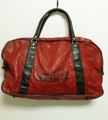 縦46cm、横(奥行き)16cm、高さ28cm。カラーはレンガ色。80年代、香港製のアディダスバッグです。テニスのラケットバッグでフロントはラケットが入れられるようになっています。とても可愛らしいデザインでタウンユースでも全然使えます。とても存在感のあるバッグです!