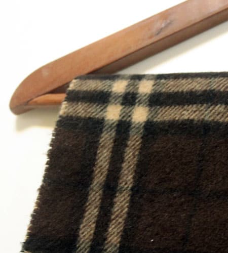 長さ142cm(フリンジを除く)、幅30cm。カラーはダークブラウン。イタリア製のラムウールマフラーです。渋いダークブラウンのバーバリーチェックのマフラーはとても大人っぽい雰囲気で普段使いはもちろんビジネスでもお使いいただけます。
