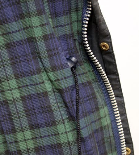着丈82cm、身幅52cm。サイズ40。カラーはネイビー。80年代イングランド製、バブアのダーハムです。ダーハムはフードがついたマウンテンパーカー型のデザインでビデイルやビューフォートよりももっとタウンユースやカジュアルに着たい方にとてもお勧めです。身幅やアームホールも他のモデルよりも細めにできていて内側がゴム引きになっているのでさらに身幅を細く調節することもできます。アウターとしてもレインコートとしても使えとても重宝するジャケットです。