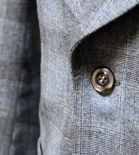 着丈74cm、身幅47cm。カラーはブルーグレー。70年代、フランス製のテーラードジャケット。カラーはグレー。一つボタンのタータンチェックのテーラードで今のトレンドらしいデザインですね。アームホール、身幅も細めのシルエットでタウンユースではもちろんドレススタイルでも合わせられるジャケットです。
