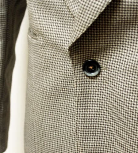 着丈74cm、身幅47cm。カラーはブラウン。70年代、デッドストック、フランス製、千鳥格子のテーラードジャケットです。一つボタンのタータンチェックのテーラードで今のトレンドらしいデザインですね。アームホール、身幅も細めのシルエットでタウンユースではもちろんドレススタイルでも合わせられるジャケットです。