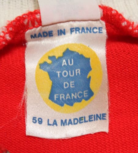 着丈68cm、身幅47cm。70年代、フランス製のサイクリングジャージです。カラーはレッド×白になります。希少なニット素材の物で当時ならではの独特な雰囲気があり洗練されています。ヨーロッパ古着の中でもヨーロッパらしさが、素材だったり、色使いであったりプリントのデザインであったりと最も出ているアイテムで本当にセンスが良いですね!
