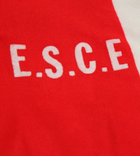 着丈71cm、身幅47cm。70年代、フランス製のサイクリングジャージです。カラーはレッド×白になります。希少なニット素材の物で当時ならではの独特な雰囲気があり洗練されています。ヨーロッパ古着の中でもヨーロッパらしさが、素材だったり、色使いであったりプリントのデザインであったりと最も出ているアイテムで本当にセンスが良いですね!