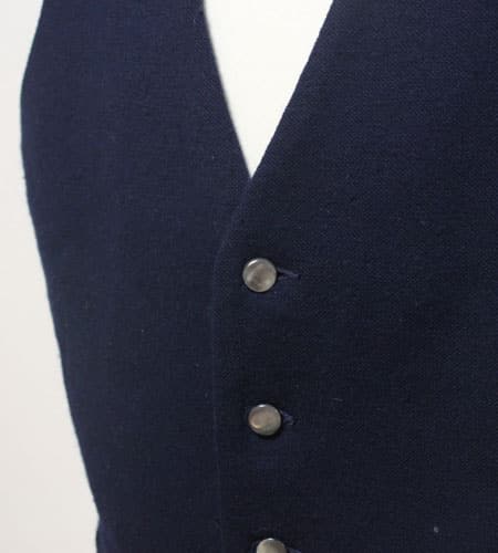 前着丈64cm、後着丈52cm、身幅51cm。カラーはネイビー。50年代、フランス製のジレになります。ウール素材のジレでになります。ボタンはシェルボタンで高級感もあります。ドレスシャツやちょっと崩してボタンダウンシャツなんかとも合わせても良いです。ジレって言うと堅苦しくて、とっつきづらいイメージですが、こちらは全体的に柔らかな印象があり取り入れやすいと思います。
