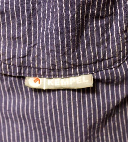 着丈72cm、身幅52cm。サイズM。カラーはインディゴブルー。80年代、ドイツ製、ストライプのケンペルのプルオーバーシャツです。フィッシャーマンシャツとワークシャツを組み合わせたような大変面白いデザインです。ドイツが誇るワークブランドだけあって流石と言わざるを得ない一枚です!