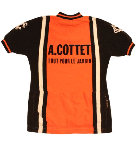 着丈68cm、身幅48cm。カラーはオレンジ×ブラック×白になります。70年代、フランス製のサイクリングジャージです。希少なニット素材の物で当時ならではの独特な雰囲気があり洗練されています。ヨーロッパ古着の中でもヨーロッパらしさが、素材だったり、色使いであったりプリントのデザインであったりと最も出ているアイテムで本当にセンスが良いですね!