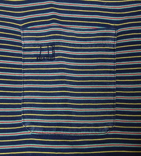 着丈73cm、身幅55cm。80年代、イタリア製、ダンヒルのポロシャツです。こちらはマルチカラーのボーダーになります。マルチカラーなんですが決して派手にならず、むしろ落ち着いた印象まであるのは流石の一言ですね。王室御用達ならではの格式が感じられます。
