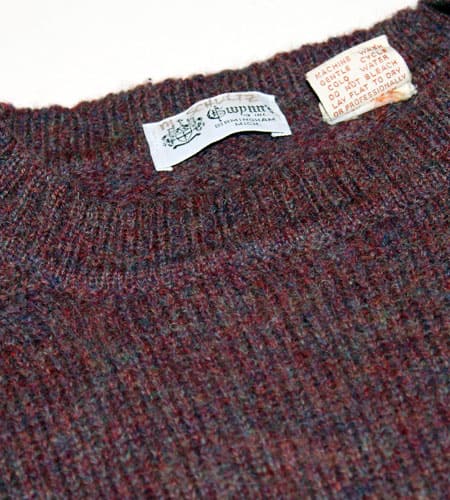 着丈64cm、身幅50cm。サイズM。カラーは葡萄色。70年代、イタリア製のシェットランドセーターです。いやすごいですね!最初に書いてますが葡萄色、まさに葡萄色、ここまで葡萄色のセーターは見た事がありません。何度も言いますがここまできれいな葡萄色のセーターは他にないですね!シェットランドウールの毛羽立った感じにとても合っています!