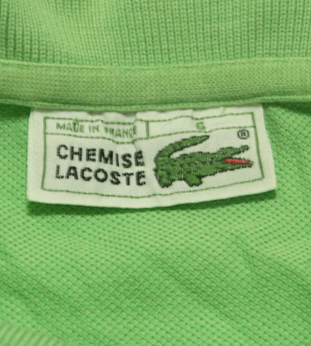 着丈73cm、身幅55cm。サイズ6。カラーはライムグリーン。70年代、フランス製、ラコステのポロシャツです。通称フララコと呼ばれる人気のあるアイテムです。こちらは鹿の子地のポロになります。ヨーロッパ古着では夏の定番ですね!