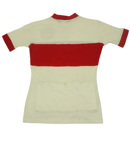 着丈69cm、身幅49cm。カラーはレッド×白。70年代、フランス製、ルコックのサイクリングジャージです。ワンポイントでルコックのプリントとフロッキープリントが入っているオリジナルのサイクリングジャージになります。復刻もされている人気のモデルになります。