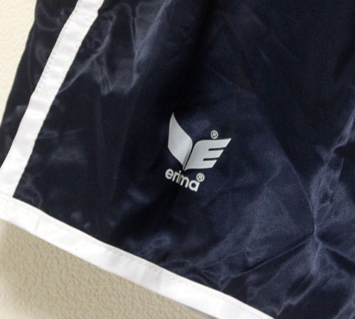 着丈26cm。ウエストはフリーサイズになります。カラーはネイビー。80年代、デッドストック、西ドイツ製、erimaのジョギングショーツです。ヨーロッパで絶大な支持を誇るビンテージジョギングショーツです。男性でも女性でも履くことができます。