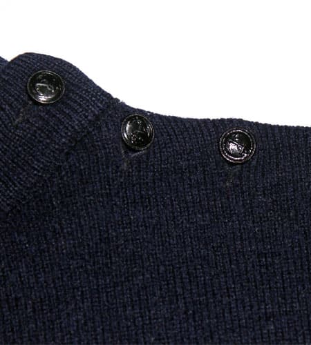着丈62cm、身幅47cm。60年代、フランス製のマリーンニットです。本場フランスのマリーンニットで今の製品とは違った趣のあるアイテムです。肩口のボタン、目の詰まった肉厚のニット、ファッション性も十分に取り入れつつなおかつ機能性に重点を置いた本物のニットです。ヨーロッパ古着では外せない一枚です。