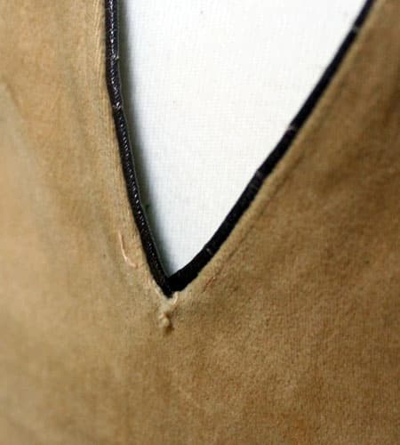 着丈61cm、身幅47cm。60年代、フランス製、フィッシングベストです。フロントはベルベット素材でバックはウールニットになっていています。襟とポケット周りはレザーのドローコードになっていて、この年代ならではの作りになっています。グランパシャツとの相性がとても良いです!