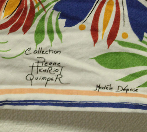 46cm×64cm。カラーは白。70年代、フランス製、アンリオカンペールのコットンのティータオルです。フランス最古の窯元、企業でもあるアンリオカンペール、こちらは大変珍しいそのティータオルになります。カンペールならではのデザインで壁にかけても雰囲気がありますしティータオルとしてアンティークのカンペール焼きのポッドとも合わせて使っても素晴らしいです!