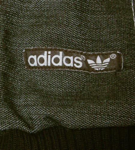 着丈57cm、身幅47cm。Pジップを使用。 70年代初期、西ドイツ製のアディダスジャージです。こちらはブラウンのニット素材のものになりますが、左腕には腕章があり、左裾にはボックスロゴというビンテージの要素がふんだんに詰まった極上の逸品です。ジップは全閉めでジャストで着ると雰囲気が出ます。サイズは小さめなので女性の方でも着られます。