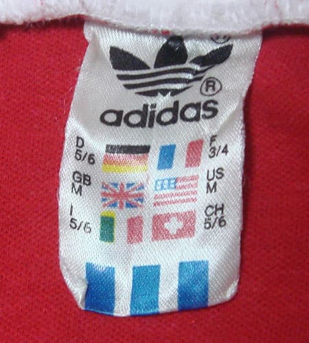 着丈68cm、身幅48cm、サイズM。80年代、西ドイツ製、アディダスのサッカーシャツです。袖、ボディーにかけてパイピングが入っています。両面にフロッキープリントも入っていて、デザインも素晴らしいです。