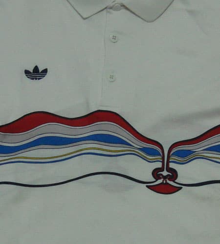 着丈69cm、身幅52cm、サイズL。80年代、西ドイツ製のオリジナル。アディダスのイワンレンドルモデルになります。いやーこれはすごい!かなりアバンギャルドなルックスですね。でも着てみるとかなりシックリくるんですよ。アディダスのポロシャツの中でも最も人気のあるモデルです。
