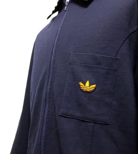 着丈71cm、身幅55cm。OPTIジップを使用 70年代、西ドイツ製、アディダスのニットジャージです。出ました!ネイビーのニットジャージ!ビンテージのアディダスジャージを象徴するモデルですね!襟、袖、裾のリブに入った三本線に左胸のポケットと金色の綺麗なトレフォイル。全てが今見ても斬新です!自分も初めてこのモデルを見た時は衝撃を受けました!もはやジャージの域を超えてしまっています。
