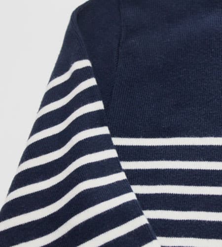 着丈64cm、身幅51cm。カラーはネイビー×白。70年代、フランス製、コテアトランティックのマリーンボーダーカットソーです。ヨーロッパ古着定番のマリーンボーダーは何枚持っていても飽きがくることがなく着続けられるアイテムです。インナーとしても着られますし、中にサーマルやシャツ等を合わせても着られて着回しもききやすいです。流行り廃りがなくずっと着られるのも嬉しいですね。