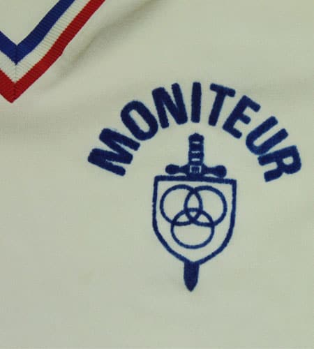 着丈70cm、身幅45cm。カラーはトリコロール×白。70年代、フランス製のユーロTシャツです。素材はポリエステル素材になります。襟、リブがトリコロールで左胸にフロッキープリントになっています。フランス製らしいお洒落な一枚です。