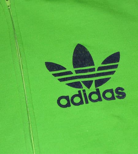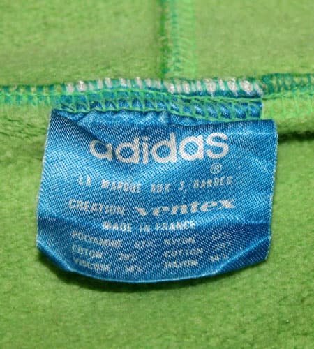 着丈62cm、身幅54cm。PRTSTILジップを使用。70年代初期、フランス製のアディダスジャージです。緑のデカロゴです!いやー本当に良いですね!