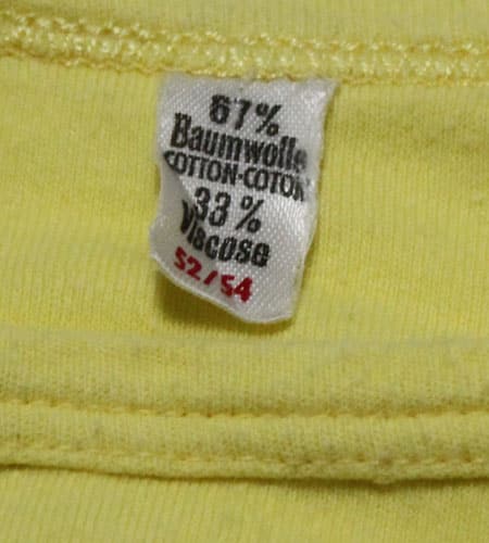 着丈60cm、身幅50cm。カラーはイエロー。西ドイツ製のユーロTシャツです。ユーロTシャツの特徴としては柔らかなストレッチコットンのボディーを使用しており着心地が良く着た時のシルエットが非常に綺麗になります。プリントもヨーロッパ独特で洗練されたデザインです。
