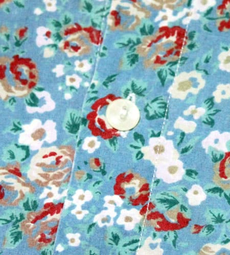 着丈72cm、身幅55cm。カラーはサックスブルー。フランス製のリバティーパターンシャツです。USの花柄シャツとは違ってフランスの花柄のシャツは細やかでとても品があります。野暮ったくならないのが最大の特徴でもあります。
