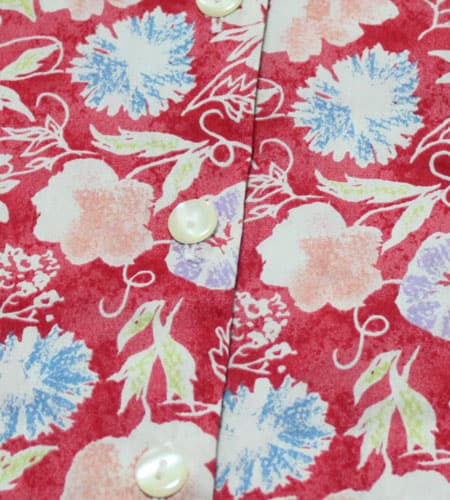 着丈67cm、身幅51cm。カラーはレッド。70年代、フランス製、キャシャレルのリバティーシャツです。リバティーパターンはキャシャレルは得意としており、華やかでありながら野暮ったさがなくとても洗練されていて当時から現在までも支持を集めています。